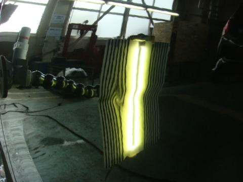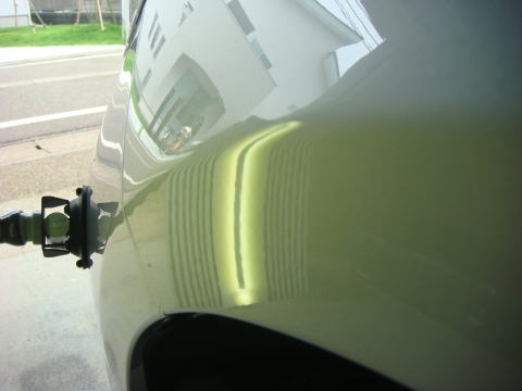 ちょと分かりずらいかもしれませんが、画像中央の斜めにすじ状の7cm程のデントです。