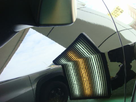 画像では分かりづらいですがプレスラインとその下の修復。ドアミラー周りの内部干渉が