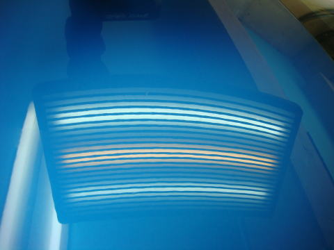 へこみ周辺の歪みの広がりがかなりあり、その調整に神経を使いました。パネルへの映り