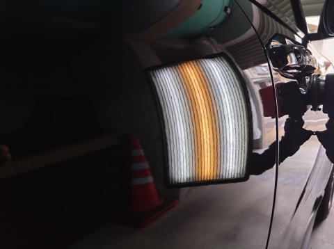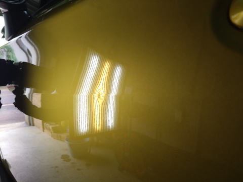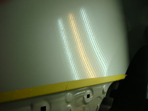 ヘコミ方が少し複雑ですが、衝撃点をしっかり押出し、元のパネルの状態に修復完了です。