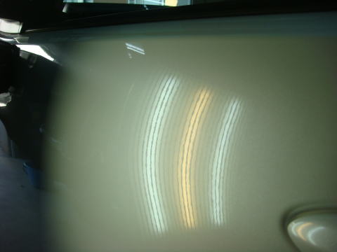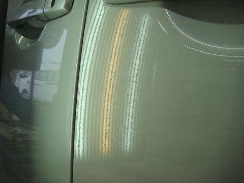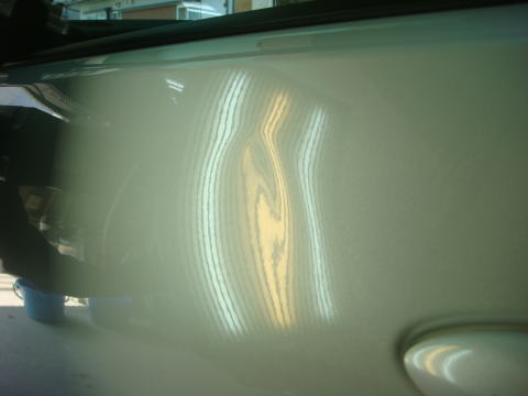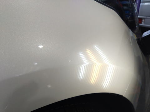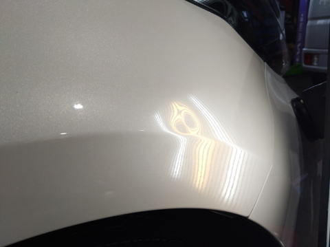 R形状の所に出来てしまい、高く盛り上がった面もありますが綺麗に修復する事が可能です。