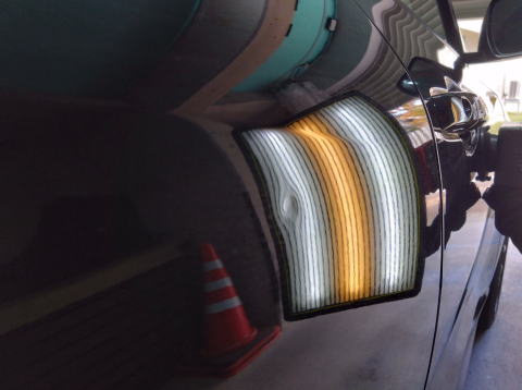 ルーフ後方、シャークアンテナ付近に3cm弱のデント