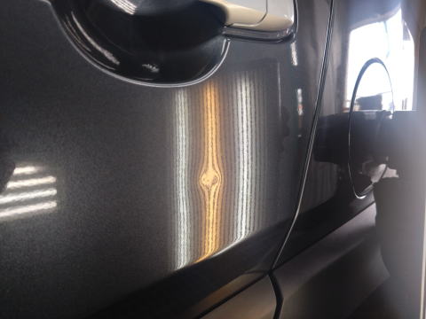 ヘコミに深さがなかったのでプーリングでの修復です。トリム脱着料金が掛からず、お客
