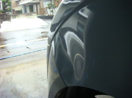 と言う事は「直しやすいでは」と思われるかと思いますが、大きければそのひずみもまた広範囲です。それでもフロントフェンダーは作業性が良く、こんな感じに修復出来てしまうんですね。