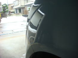 フロントバンパーとの境目、フェンダーアーチとプレスラインの間に出来た5cm位のデントです。