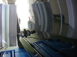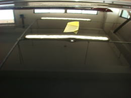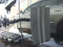 へこみはパネルの裏の補強のフチにあった為ルーフライニングに一部隙間を作り、そこから薄いツイストツールをすべり込ませ補強をテコにアクセス へこみは綺麗になくなりました。