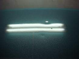 塗膜の削れは残りますが、へこみはご覧の通り修復です。後はお客様がご用意した塗料で筆刺しされるとの事です。ボンネットをまるまる鈑金塗装するか、オリジナル塗装を残し、へこみだけをデントリペアで直してキズはタッチアップで補修するのかは、料金やリスクをお客様とご相談の上、判断して頂いております。今回のケースでは仕上りはもちろん、料金的にも大変喜んで頂く事が出来ました。なんせ鈑金塗装の半額以下の料金で済んでしまいますからね。