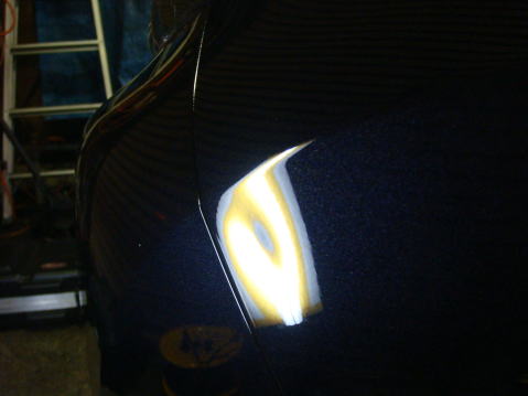 へこみはパネルの裏の補強のフチにあった為ルーフライニングに一部隙間を作り、そこか