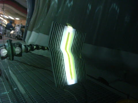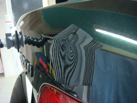 20cm強で浅めのデントです。分かりづらいかも知れませんが、映り込んだ黒のラインが
