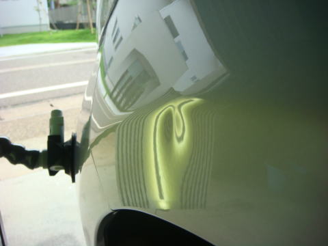 ちょと分かりずらいかもしれませんが、画像中央の斜めにすじ状の7cm程のデントです。
