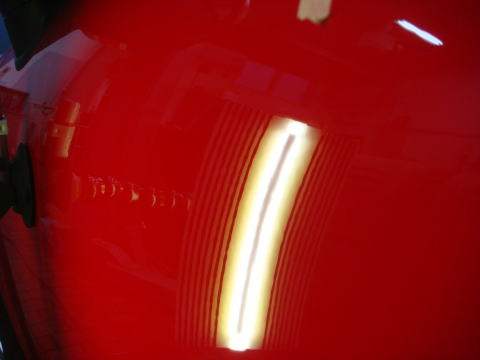 リヤクォーターにかなり目立っている5cmのシャープデントです。