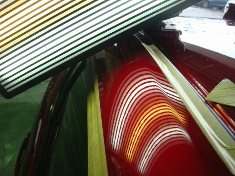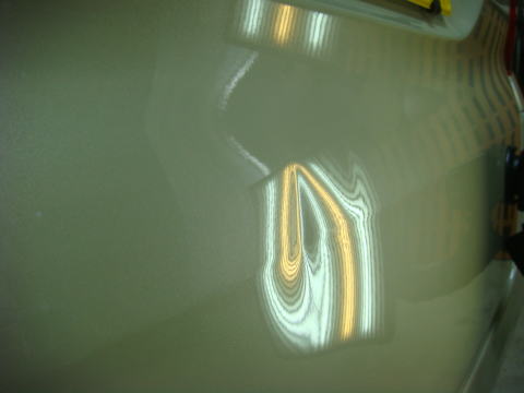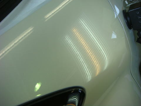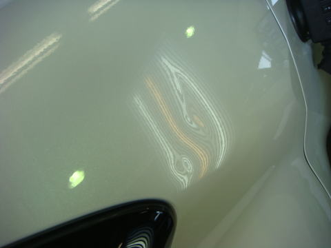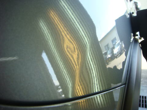 画像では分かりづらいですがプレスラインとその下の修復。ドアミラー周りの内部干渉が