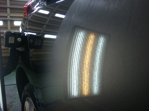 クォーターパネルのテールランプ前方に10cmと3cmのデントです。