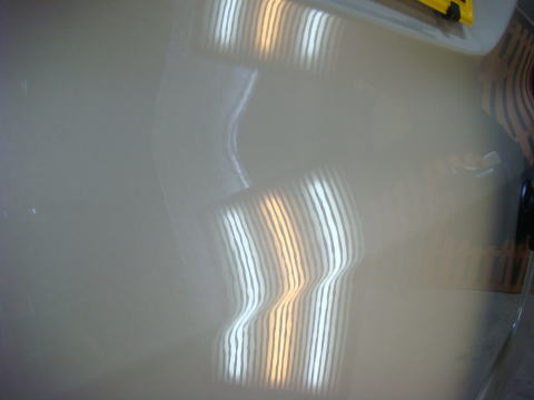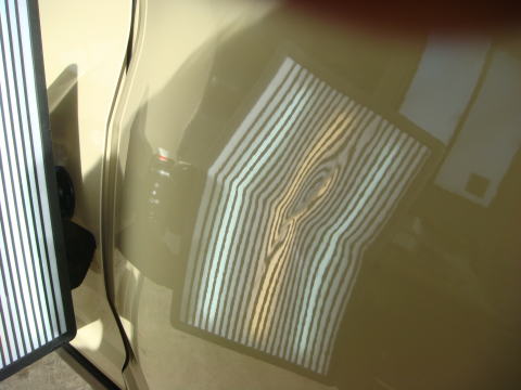 へこみ周辺の歪みの広がりがかなりあり、その調整に神経を使いました。パネルへの映り