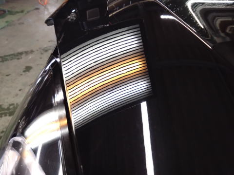 ヘコミ方が少し複雑ですが、衝撃点をしっかり押出し、元のパネルの状態に修復完了です。